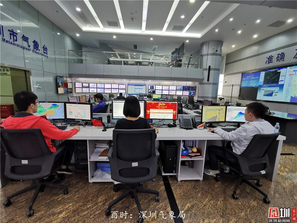 酉時:17點31分,深圳市氣象局預(yù)報服務(wù)團隊的蔡偉源、鄭群峰、賀佳佳、胡霄、張超春節(jié)值守,在氣象預(yù)警預(yù)報業(yè)務(wù)大廳密切關(guān)注春運天氣。
