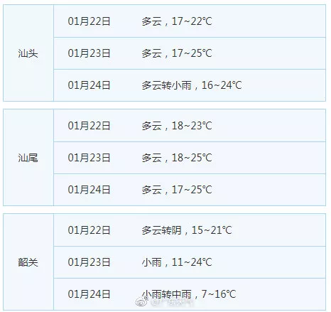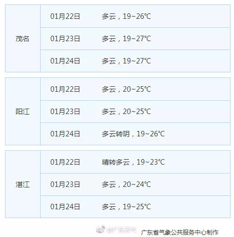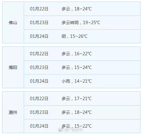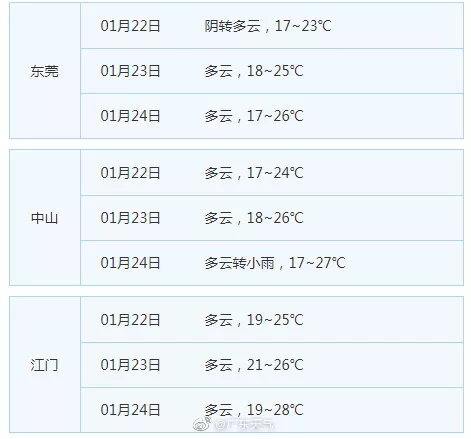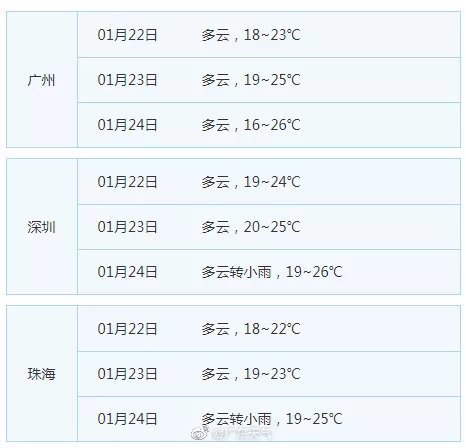 24日(除夕),韶關(guān)北部、清遠(yuǎn)北部有小到中雨,其余市縣多云間陰天,局部有零星小雨,早晨大部分市縣有(輕)霧。