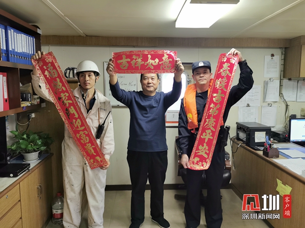 深圳灣邊檢站民警現(xiàn)場(chǎng)揮毫潑墨寫(xiě)下祝福。