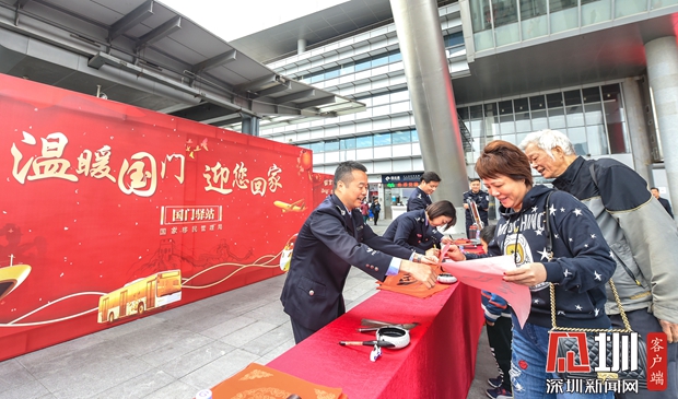 見(jiàn)圳客戶端·深圳新聞網(wǎng)2020年1月22日訊(見(jiàn)圳客戶端、深圳新聞網(wǎng) 記者 張玲 通訊員 劉姝夢(mèng))巍巍國(guó)門(mén)彰顯大國(guó)風(fēng)范,涓涓暖流展現(xiàn)為民情懷。不辭風(fēng)雪的歸鄉(xiāng)路上,國(guó)門(mén)——就是您的第一道家門(mén)。根據(jù)國(guó)家移民管理局統(tǒng)一部署,2020年1月17日至2月1日,深圳邊檢總站積極開(kāi)展“溫暖國(guó)門(mén)迎您回家”主題活動(dòng),在各口岸出入境現(xiàn)場(chǎng)設(shè)置“國(guó)門(mén)驛站”,擺放“國(guó)門(mén)同框”合影墻、“家國(guó)情懷”留言板,點(diǎn)綴體現(xiàn)中國(guó)年的傳統(tǒng)文化元素表達(dá)祝愿,著力提升廣大出入境人員特別是歸國(guó)返鄉(xiāng)人員的獲得感、幸福感和歸屬感,各口岸沉浸在濃濃的年味里。