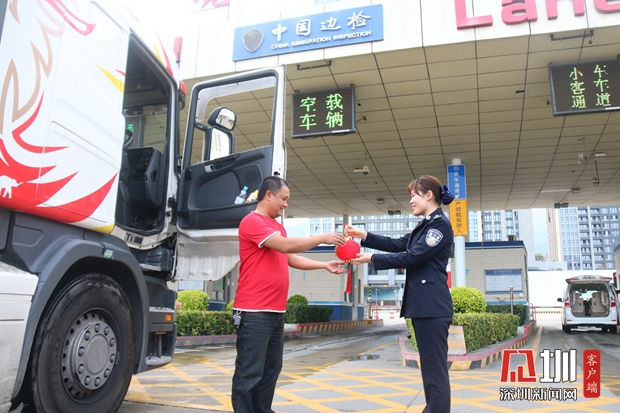 沙頭角邊檢站為大貨車(chē)司機(jī)送上春節(jié)小燈籠。
