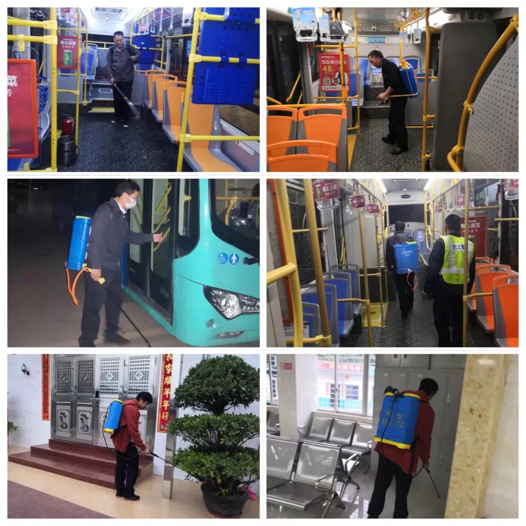 ▲汽車客運(yùn)站工作人員正進(jìn)行消毒消殺工作