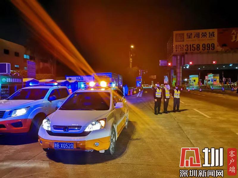 深圳交警在黃鶴收費(fèi)站指揮交通。