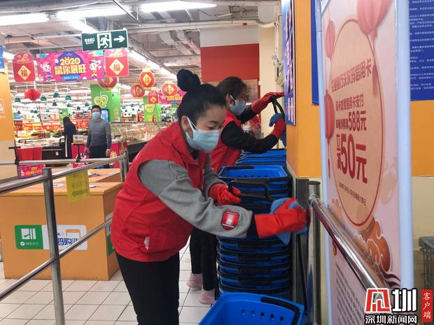 “其實家里人知道后也不贊成我們這個時候來做志愿者,畢竟也有點擔(dān)心嘛”于文平對記者說:“我們作為一個小市民,對國家來說大的貢獻(xiàn)可能談不上,但是因為我喜歡深圳這座城市,所以我決定要出一份力,做一些力所能及的事,過年期間能讓大家吃上安心的食品,來購物的時候能用上消毒過的購物車、購物籃,我也覺得很開心?!?/p>