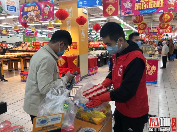 見圳客戶端·深圳新聞網(wǎng)2020年1月31日訊(見圳客戶端、深圳新聞網(wǎng)記者 胡津瑋)戴上口罩、手套,再穿上標(biāo)志性的紅色馬甲,市食藥志愿服務(wù)總隊的志愿者們紛紛走上超市的各個崗位,清理貨品、補(bǔ)貨、對購物車購物籃進(jìn)行清潔消毒、為來購物的市民測量體溫…據(jù)了解,由于春節(jié)期間各大商超缺少人手,在市市場監(jiān)管局與團(tuán)市委的指導(dǎo)下,市食藥志愿服務(wù)總隊迅速調(diào)動全市在深的食品藥品安全志愿者,成立了由近300名食品藥品安全志愿者組成的春節(jié)“菜籃子”志愿者保障工作小組,為全市各大商超提供志愿服務(wù),全力保障市場供應(yīng)、消除市民顧慮,在防控疫情特殊期間注入了紅馬甲的正能量。記者今天便走訪了深圳的一家超市,尋找這批紅色的身影,了解他們一天的工作。