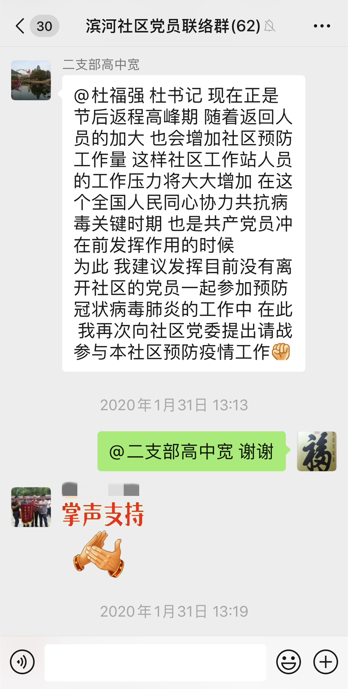 深圳新聞網(wǎng)2月2日訊(見圳客戶端、深圳新聞網(wǎng)記者 邱曉潔)“在此,我再次向社區(qū)黨委提出請戰(zhàn)參與本社區(qū)預防疫情工作?!?月31日,福田區(qū)南園街道濱河社區(qū)老黨員高中寬在濱河社區(qū)黨員聯(lián)絡(luò)微信群里再次主動請纓參與社區(qū)疫情防控工作。