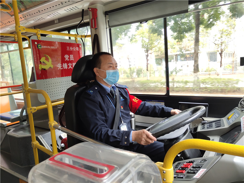 6點25分,邱華準時發(fā)班,車輛緩緩開出場站,這也意味著他一天工作的開始。由于現(xiàn)在是春節(jié)期間,加上疫情防控,路面上車少人稀,但邱華并沒有放松警惕,行車時還是小心翼翼按照規(guī)章制度嚴格操作。每到一個路口,他都會自覺減速,轉(zhuǎn)彎禮讓行人。相比以往不同的是,為了保障乘客的健康和安全,每到一個站臺,有乘客上車時,他都會提醒大家一定要帶好口罩。