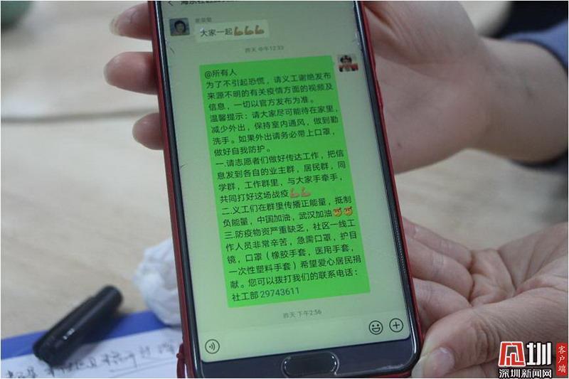 早前,吳麗在海樂(lè)社區(qū)肺炎疫情防控義工微信群發(fā)送的有關(guān)疫情防控工作的消息。