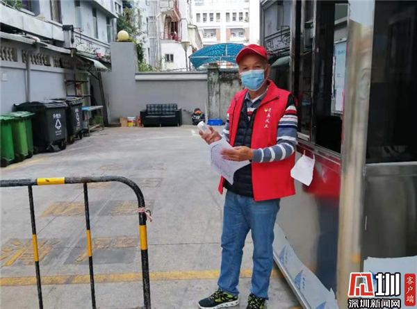 除自發(fā)捐款贈(zèng)物外,退役軍人們還積極發(fā)揮街道退役軍人義工隊(duì)的力量。由于疫情防控原因,需要避免人員聚集,減少外出,老兵們想為疫情防控作貢獻(xiàn)卻找不到好的方法?!安煌獬霾痪蹠?huì),我們做好防護(hù),就待在自己住的小區(qū)里做貢獻(xiàn)?!笨紤]到近期返深人員逐漸增多,居民小區(qū)防疫工作任務(wù)越來(lái)越重,作為街道老兵義工隊(duì)的隊(duì)長(zhǎng),林貞輝在群里向老兵們發(fā)起這樣的倡議,“大家看到這個(gè)提議都很支持,想要參加,這樣既能為防疫作貢獻(xiàn),又減少傳染的風(fēng)險(xiǎn),戰(zhàn)友們都很高興。”