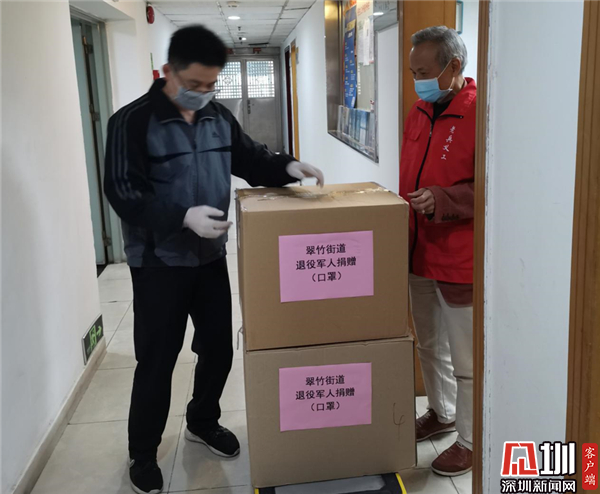 2月6日上午,一批價(jià)值2萬(wàn)多元的口罩送到深圳市羅湖區(qū)翠竹街道辦事處,原來(lái),這是退役軍人代表林貞輝、鄒強(qiáng)杰送來(lái)的防護(hù)物資?!霸诋?dāng)前防護(hù)物資緊缺的情況下,感謝你們對(duì)街道防疫一線工作的援助和支持,退役軍人‘退伍不褪色’的精神令人敬佩?!苯值傈h工委書(shū)記袁亮向他們表達(dá)感謝。