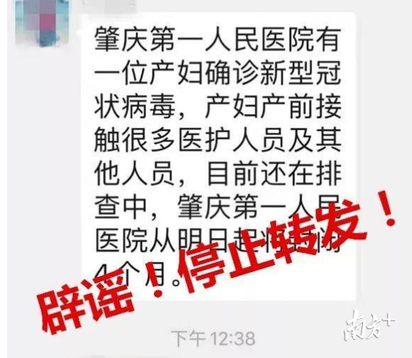“肇慶第一人民醫(yī)院有孕婦確診,產(chǎn)前接觸很多醫(yī)護(hù)人員。現(xiàn)在要隔離183人,封閉醫(yī)院四個月?!苯眨貞c的微信群中,這條謠言瘋傳,引發(fā)市民恐慌,不敢去醫(yī)院就醫(yī)。