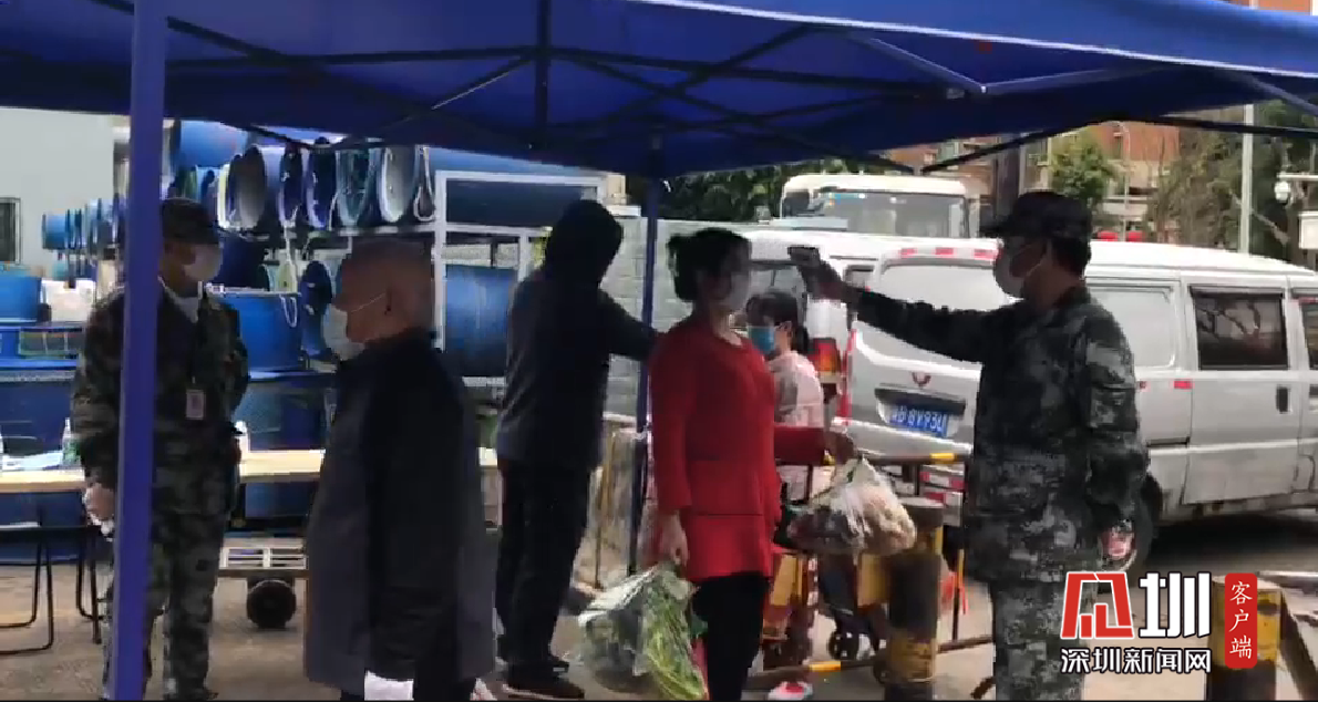 福田農(nóng)批市場(chǎng)出入口處配備專(zhuān)人進(jìn)行體溫測(cè)試。