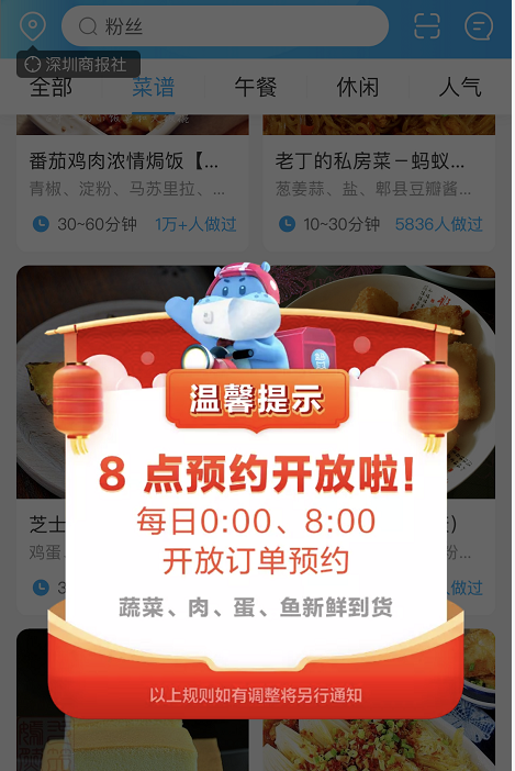 商品情況: app顯示品類齊全,水果蔬菜、肉禽單品、海鮮水產(chǎn)、熱食凍品等應(yīng)有盡有。但庫(kù)存有限,市民爆料反饋,自己多次在該app提前預(yù)約第二天菜品,多次顯示預(yù)約已滿,無(wú)法購(gòu)買。