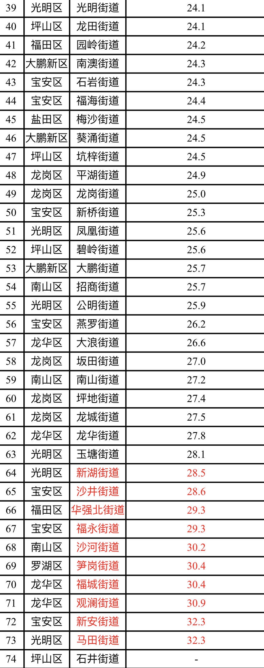見圳客戶端·深圳新聞網(wǎng)2020年2月12日訊(見圳客戶端、深圳新聞網(wǎng)記者 陳婕)2020年1月,深圳市74個(gè)街道PM2.5濃度在18.4-32.3微克/立方米之間,均值為24.3微克/立方米。排名前十的是:橫崗、黃貝、鹽田、海山、桃源、梅林、南湖、福田、東門和翠竹等街道,排名倒數(shù)前十的是:馬田、新安、觀瀾、福城、筍崗、沙河、福永、華強(qiáng)北、沙井和新湖等街道。