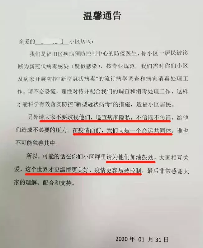 “疫情陰影下,深圳這個小區(qū)的通告溫暖了我……”