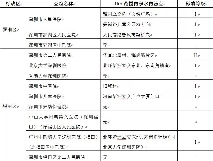 根據(jù)2019年度全市積水內(nèi)澇報送情況,深圳市水務局初步梳理出全市49家發(fā)熱門診(含1家新型冠狀病毒感染肺炎定點救治醫(yī)院)周邊積水內(nèi)澇點29處,并結合積水內(nèi)澇嚴重情況分為Ⅰ、Ⅱ、Ⅲ級。