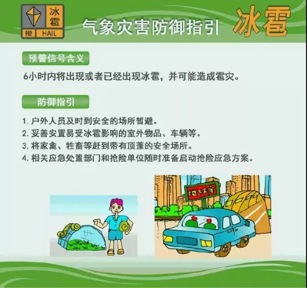 各市縣先后發(fā)布了冰雹橙色預(yù)警,冰雹橙色預(yù)警信號表示6小時(shí)內(nèi)將出現(xiàn)或者已經(jīng)出現(xiàn)冰雹,并可能造成雹災(zāi)。