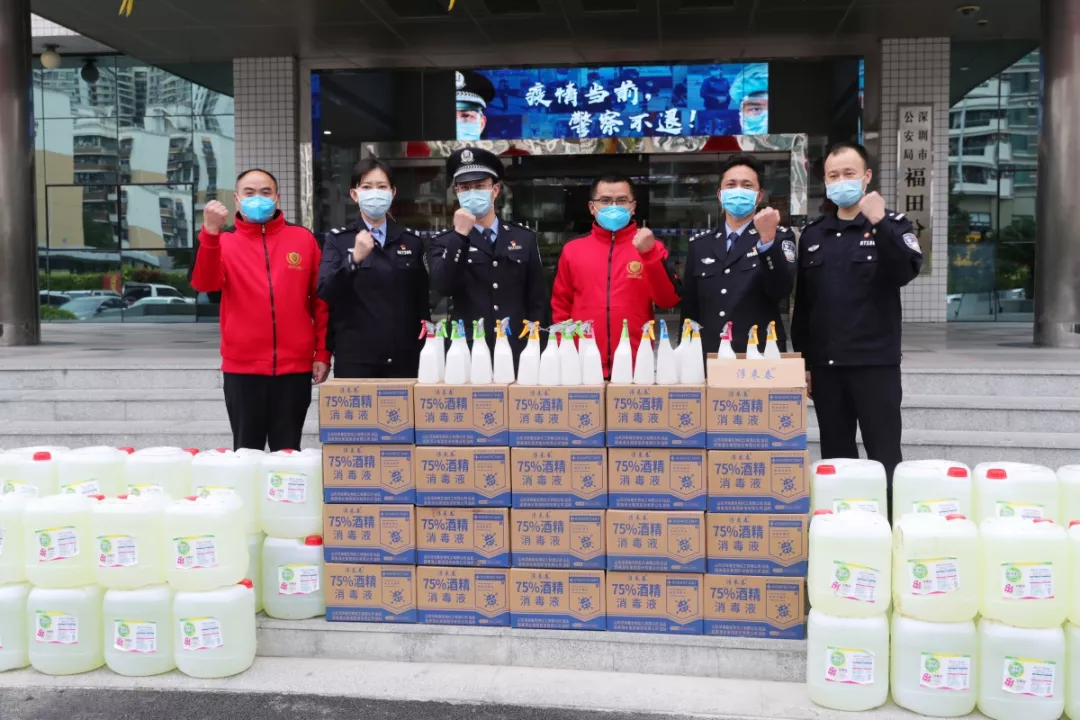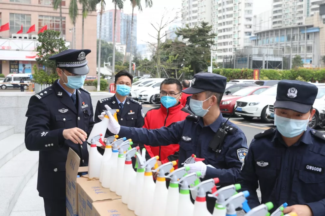 當(dāng)天16時(shí)許,愛心企業(yè)代表肖先生帶著50桶20公斤消毒液、480瓶消毒酒精、20個(gè)噴壺來到了福田分局,捐贈給了福田警方。福田分局黨委委員、政治處主任桂禮強(qiáng)代表分局接收捐贈抗疫物資,并對愛心企業(yè)表示感謝。