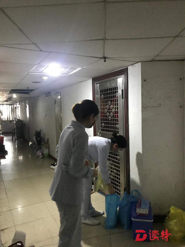 “不同戶換防護(hù)裝備,同戶換手套。”保證安全的同時,為了最大限度減少防護(hù)裝備的使用量,在為同一戶的不同居民進(jìn)行采樣時,工作人員會更換手套和頻繁消毒,完成一戶時,才會更換防隔服等防護(hù)裝備。