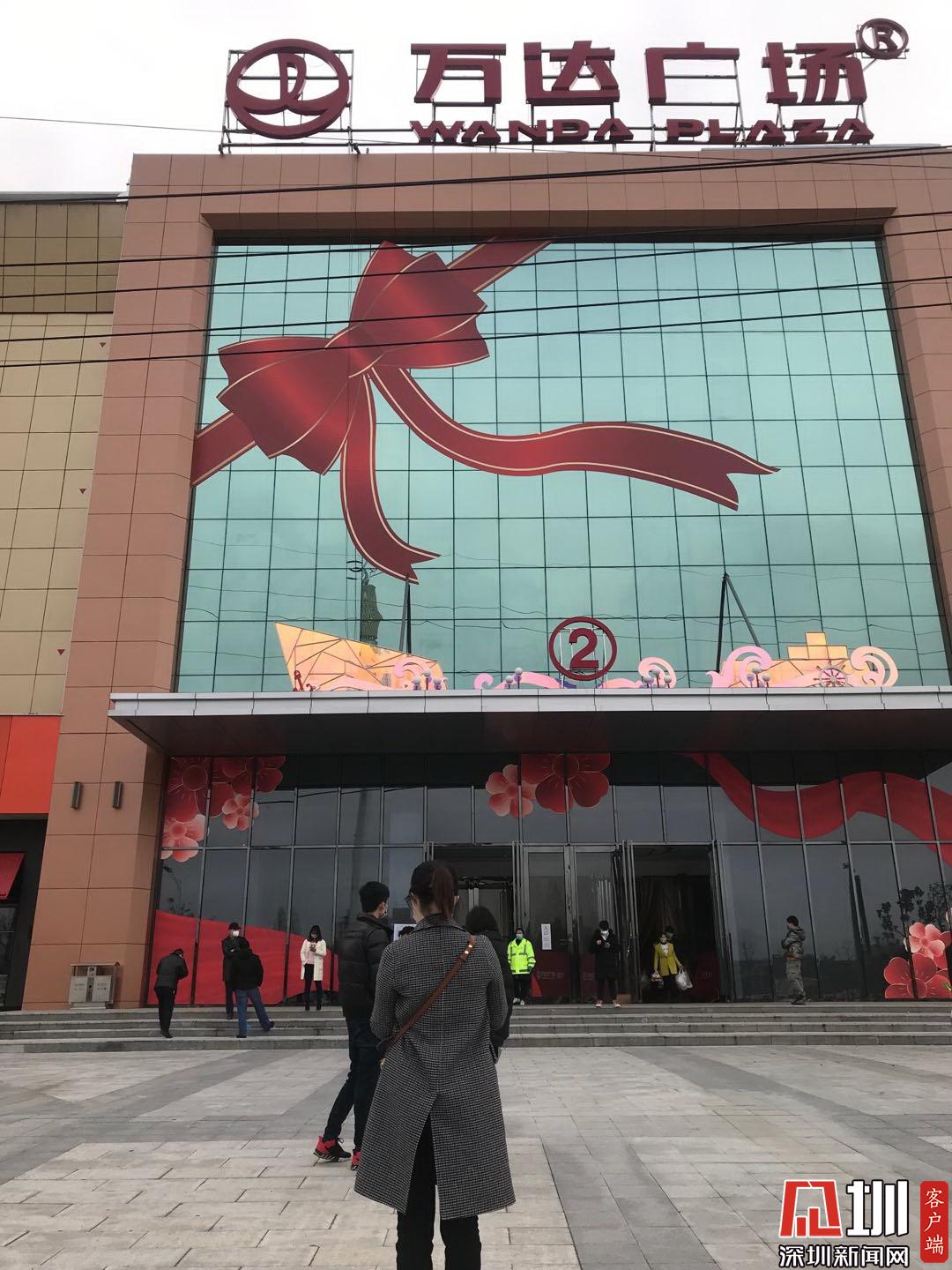 離開武穴城市廣場,呂女士又來到開業(yè)才10多天的萬達廣場。碰上疫情,四層的商場里也只保留了超市在營業(yè)。萬達廣場超市門口有少許人排隊,工作人員在引導排隊市民保持一米以上距離。