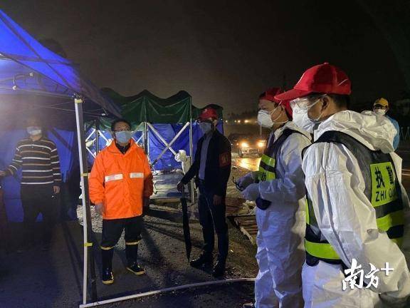 坪地街道黨工委書記曾憲旺冒雨夜巡檢查點,了解當日車流量以及重點區(qū)域人員返深情況,同時慰問一線執(zhí)勤人員及志愿者。