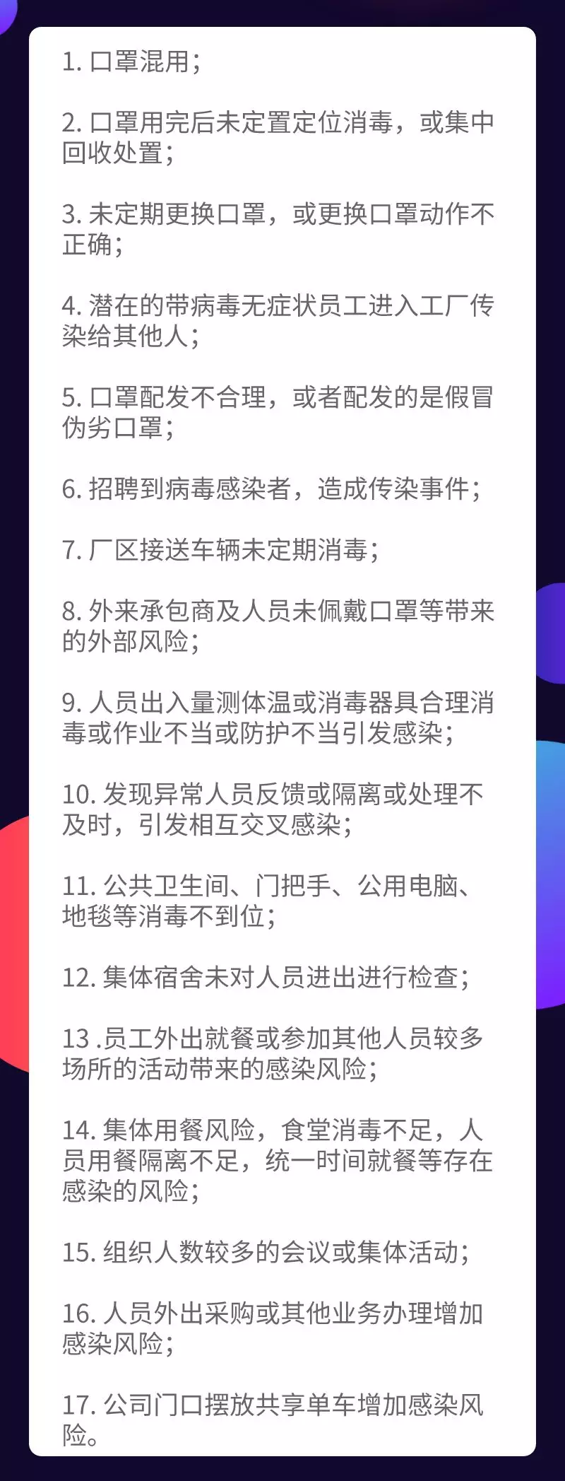 疫情防控和節(jié)后復(fù)產(chǎn)復(fù)工給企業(yè)安全生產(chǎn)帶來新挑戰(zhàn),如何做好防控措施?哪些風(fēng)險又要防范?員工又如何自我保護?