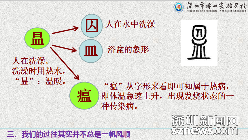 坪山實(shí)驗(yàn)學(xué)校校長安國強(qiáng)校通過“說文解字”的形式生動(dòng)講解了“瘟”與“疫”的字義,讓大朋友和小朋友們都理解了瘟疫爆發(fā)時(shí)的可怕性與嚴(yán)重性。他還從歷史的角度讓同學(xué)們了解人類與自然災(zāi)害斗爭的過往。