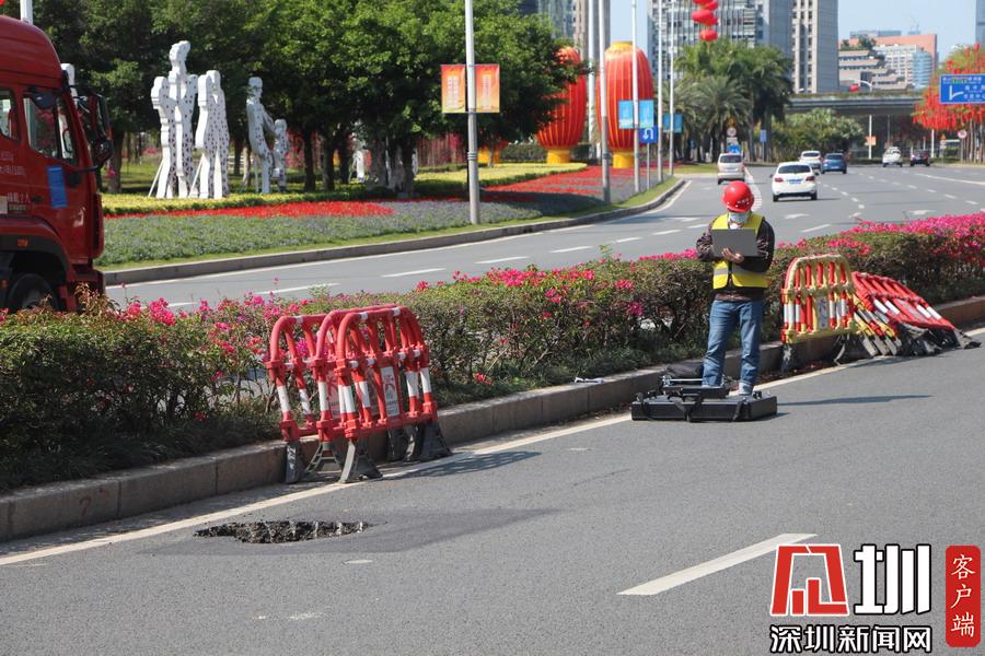 深圳市民廣場前一輔路驚現(xiàn)直徑一米坑 有關(guān)部門:正加緊修復(fù)