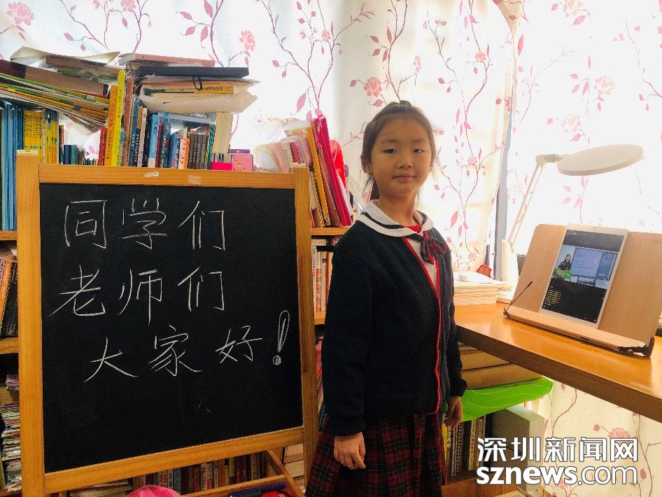 早早地,小妞要我在小黑板上寫下對老師們對同學(xué)們的問候。還記得昨晚臨睡前,她興奮地說:“明天就能和老師和同學(xué)們在網(wǎng)上相見,太開心了。”