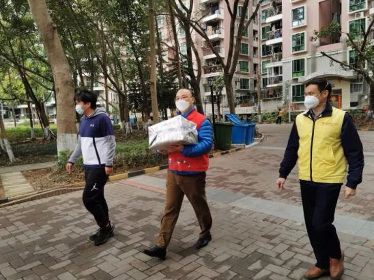 羅湖區(qū)東曉街道東曉社區(qū)某大廈出現(xiàn)確診病例后,志愿者何洪斌每天組織八九個(gè)人的義工服務(wù)隊(duì)對(duì)居家醫(yī)學(xué)觀察人員進(jìn)行服務(wù)。