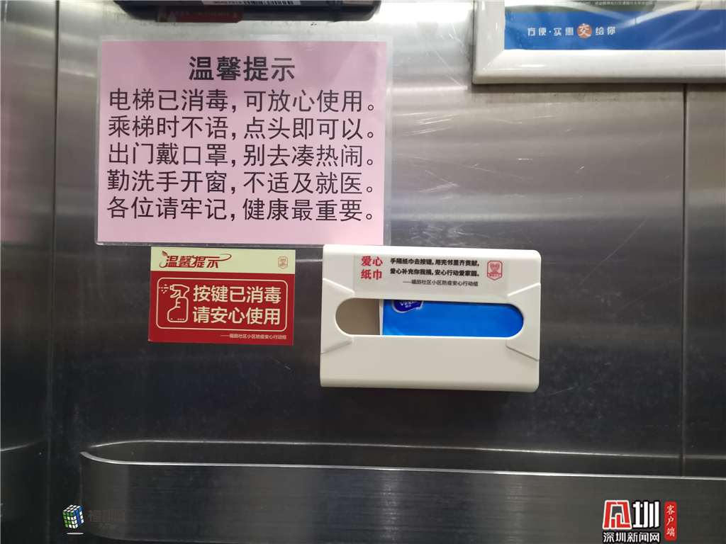 為做好小區(qū)防疫,電梯間消毒、電梯按鈕覆膜、電梯間設(shè)置公用紙巾已成為很多小區(qū)的標(biāo)配,隨之也產(chǎn)生了新的問題,比如電梯按鈕覆膜多按幾下就破了,特別是“1”和關(guān)門按鍵,小區(qū)物業(yè)剛用新的膜覆蓋上,沒一會(huì)兒的功夫就被戳破了,另外,按電梯按鍵有的小區(qū)設(shè)置了公用紙,紙巾用后亂扔等問題也影響小區(qū)衛(wèi)生。面對這樣的抱怨和難題,福田區(qū)社區(qū)小區(qū)防疫安心行動(dòng)組從細(xì)微處著手,為出現(xiàn)確診病例采取硬隔離的小區(qū)統(tǒng)一購制了掛壁紙巾盒,并采購了電梯按鈕專用膜覆蓋?!斑@種電梯按鍵保護(hù)膜太好了,韌性強(qiáng)、不易破,便于消毒,你們太細(xì)心了,非常感謝!”福田區(qū)蓮花街道彩田村物業(yè)公司負(fù)責(zé)人對安心行動(dòng)組贈(zèng)送的電梯按鍵透明保護(hù)膜贊不絕口。
