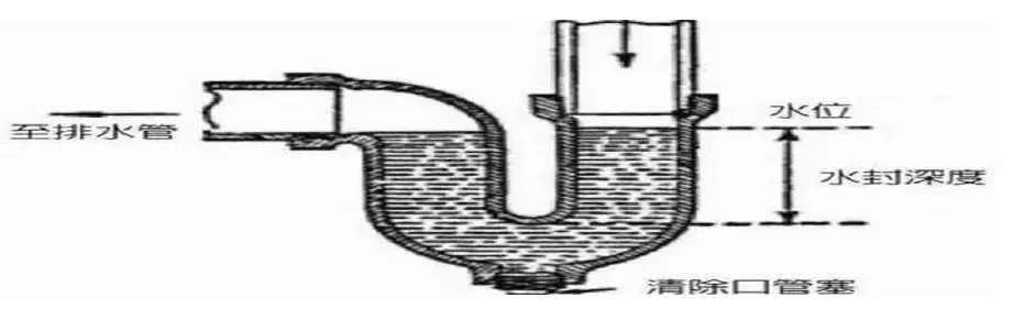 在建筑排水管道中,水封指的是設在衛(wèi)生器具排水口下,用來抵抗排水管內(nèi)氣壓差變化,防止排水管道系統(tǒng)中氣體竄入室內(nèi)的一定高度的水柱,通常用存水彎來實現(xiàn)。