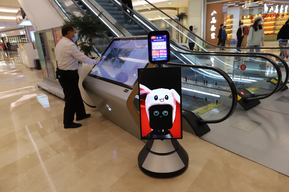 走在商場(chǎng)中,隨時(shí)可以看到保潔人員在消毒清潔。在商場(chǎng)一樓中庭導(dǎo)購(gòu)屏和導(dǎo)購(gòu)機(jī)器人處,保潔人員用消毒水反復(fù)擦拭屏幕。據(jù)悉,商場(chǎng)每小時(shí)巡回對(duì)扶梯、電梯、衛(wèi)生間、消防通道、導(dǎo)視屏、扶手欄桿、休閑椅、門(mén)把手、垃圾房、垃圾桶等地進(jìn)行消毒。
