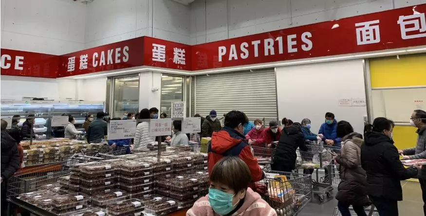 ▲這兩天,位于上海閔行區(qū)的Costco超市里,購(gòu)物的人們又排起了長(zhǎng)龍。