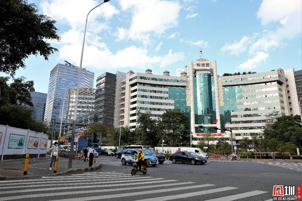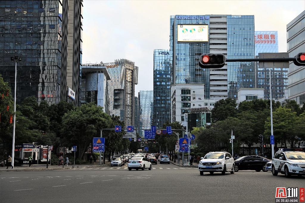深圳科技園大樓外,工作時(shí)間的科苑科發(fā)路口車流量依舊不小。