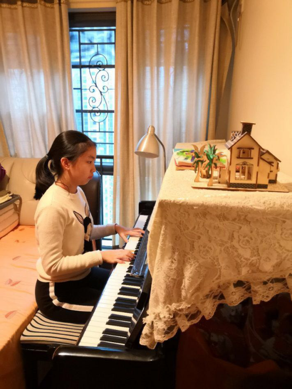創(chuàng)作過程中,凃依舟遇到不少瓶頸?!办`感來時,我先彈出來,再記下來。但當(dāng)化作音符時,卻找不到當(dāng)時的旋律了?!眱蛞乐壅f。為解決難題,爸爸凃永剛不斷為女兒支招?!斑厪椷呁晟啤2挥每桃馊ヤ秩?,真情流露就是最飽滿地創(chuàng)作?!眱蛴绖倢ε畠赫f。一周后,《在遠(yuǎn)處想著你》完成了?!拔覀兎浅VС謨蛞乐圩鲞@件事,看到全國都在為武漢加油,很感動,希望疫情早點(diǎn)結(jié)束?!眱蛴绖傉f。
