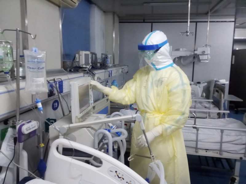 吃完和三病區(qū)主任一路到了隔離病房門口,氣氛突然就凝重起來。脫衣服、洗手、穿防護(hù)服,護(hù)士嚴(yán)格監(jiān)督每個步驟,口罩、隔離衣帽子不能留一點(diǎn)縫隙。我也有些緊張,生怕有什么地方?jīng)]做好出現(xiàn)暴露,也不知道推開那扇沉重神秘的大門后會是什么樣子?