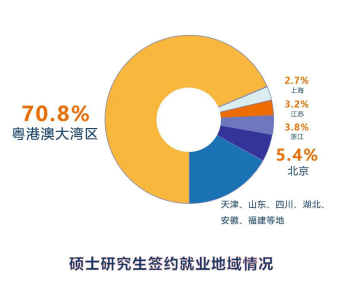 而在碩士研究生的就業(yè)數(shù)據(jù)方面,碩士研究生就業(yè)率達(dá)98.8%,四分之三的同學(xué)選擇了簽約就業(yè)。錄取畢業(yè)生最多的企業(yè)分別是華為、中興、招商銀行,大多數(shù)畢業(yè)生都留在了粵港澳大灣區(qū)。