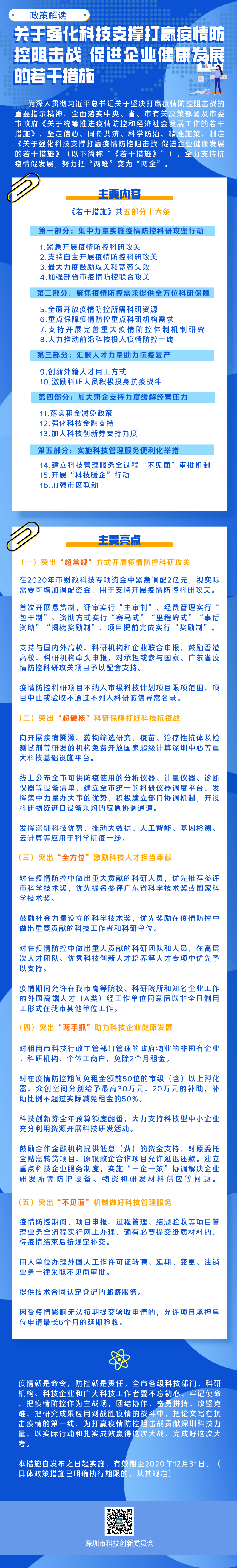 見圳客戶端·深圳新聞網(wǎng)2020年3月3日訊(見圳客戶端、深圳新聞網(wǎng)記者 陳婕)為深入貫徹習(xí)近平總書記關(guān)于堅(jiān)決打贏疫情防控阻擊戰(zhàn)的重要指示精神,深圳市科技創(chuàng)新委員會制定《關(guān)于強(qiáng)化科技支撐打贏疫情防控阻擊戰(zhàn)促進(jìn)企業(yè)健康發(fā)展的若干措施》(以下簡稱“《若干措施》”),《若干措施》共五部分十六條,其中,突出“超常規(guī)”方式,在2020年財(cái)政科技專項(xiàng)資金中緊急調(diào)配2億元,視實(shí)際需要可增加調(diào)配資金,用于支持開展疫情防控科研攻關(guān),努力把“兩難”變?yōu)椤皟扇薄?/p>