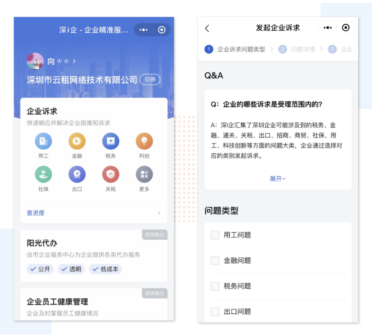 “深i企-精準(zhǔn)服務(wù)企業(yè)”平臺(tái)暫時(shí)不受理投訴舉報(bào)有關(guān)的信息。企業(yè)可通過我市已公布的相關(guān)渠道進(jìn)行投訴舉報(bào)。