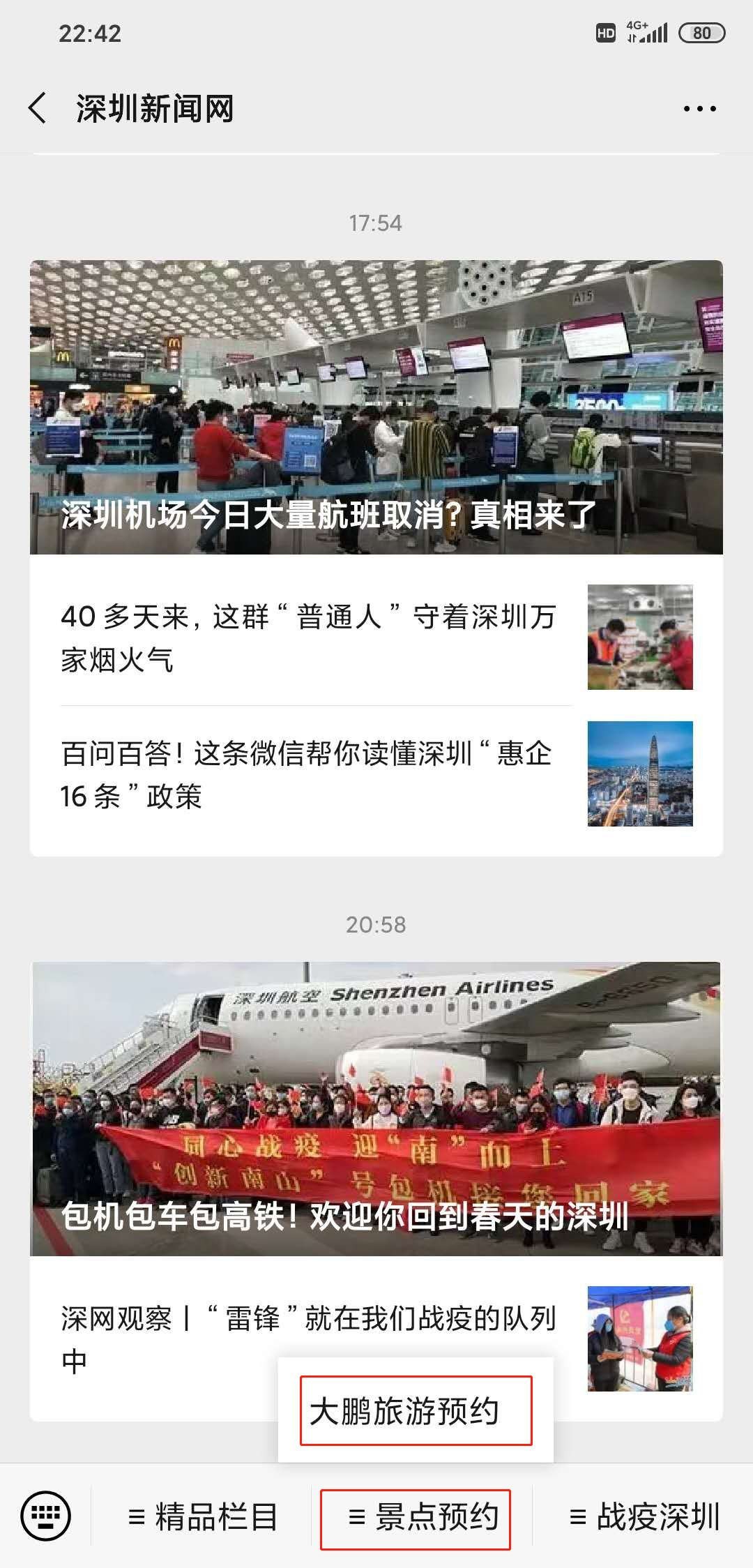 ⑨3月6日起至疫情防控期結(jié)束,配合大鵬新區(qū)兼顧疫情防控和旅游景區(qū)、住宿業(yè)發(fā)展的前提下,采取分類(lèi)分步方式開(kāi)放旅游景區(qū)工作,“疫情防控期大鵬新區(qū)旅游預(yù)約平臺(tái)”正式上線(xiàn),即日起所有前往新區(qū)游客(含住宿與非住宿)出發(fā)前3至1日均需進(jìn)行實(shí)名預(yù)約。(預(yù)約方式請(qǐng)見(jiàn)下圖)