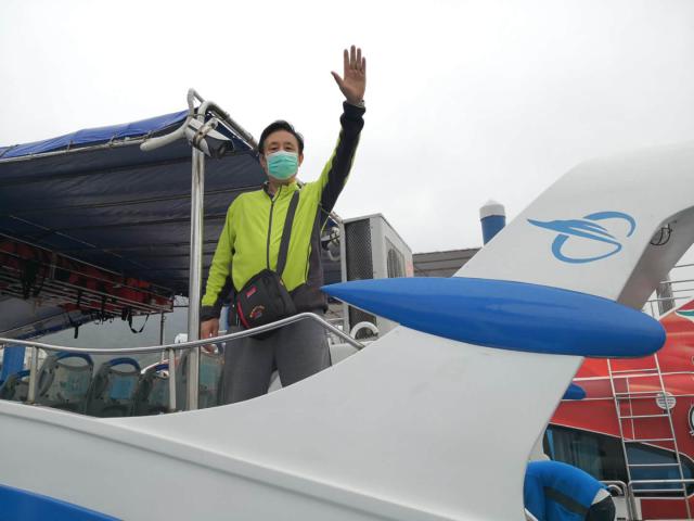 今天早上8時(shí)許,68歲的老人尹克孝早早來(lái)到鹽田金色海岸碼頭,準(zhǔn)備乘上午10時(shí)開(kāi)出的復(fù)航首班船。尹克孝原是江蘇省籃球隊(duì)隊(duì)員,通過(guò)媒體得知今天鹽田至南澳海上交通復(fù)航,特意來(lái)乘坐,獨(dú)享海上風(fēng)光。金色海岸董事長(zhǎng)鄭建國(guó)給予他免費(fèi)乘船的待遇。