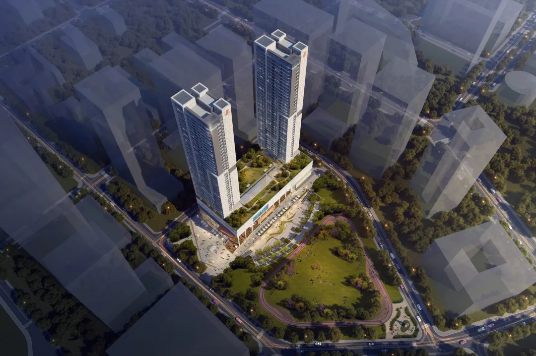 ●北區(qū)規(guī)劃建設(shè)3棟塔樓(高度約190米,56層)、2層裙樓、3層地下室及1所9班幼兒園;