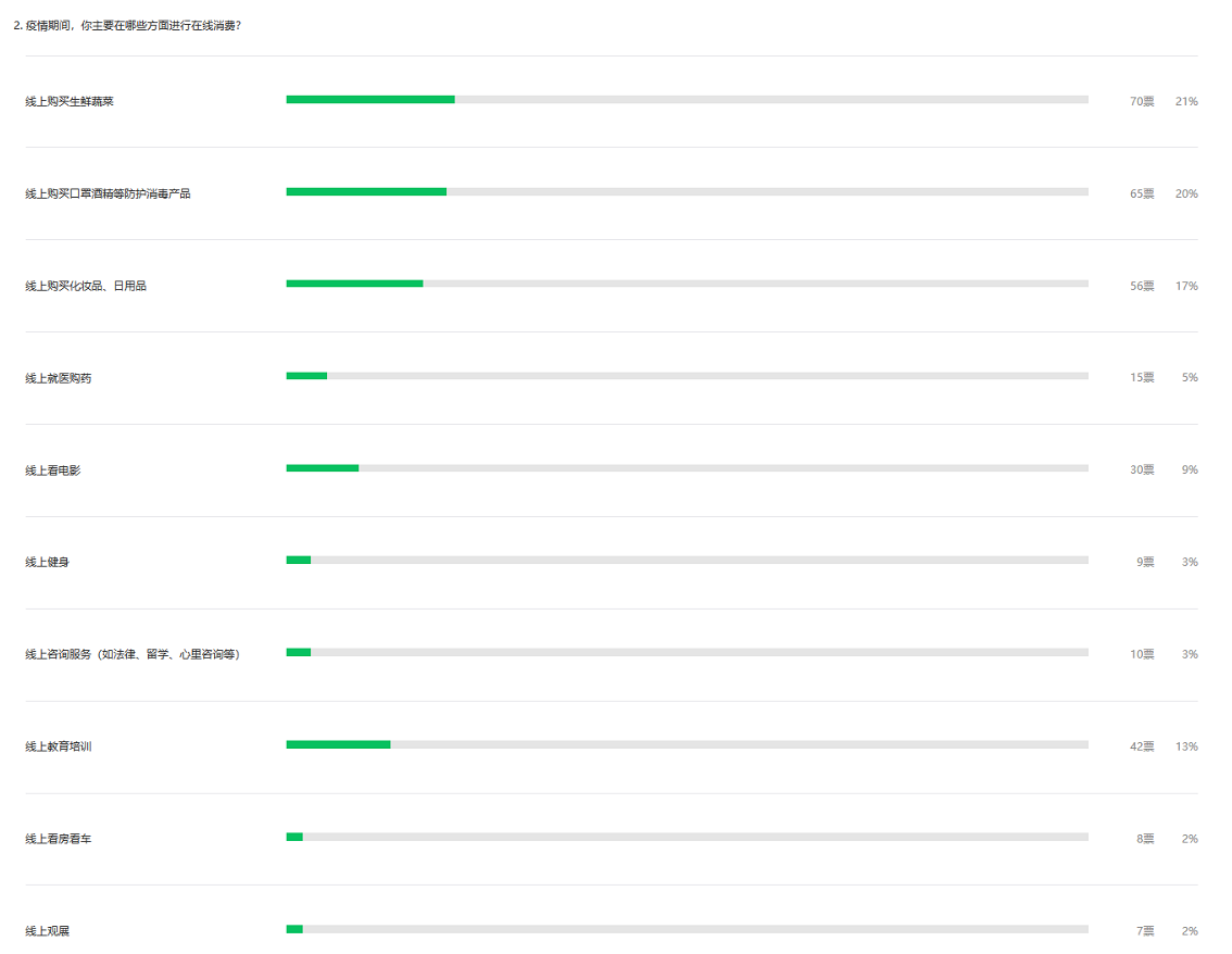 疫情在無(wú)意中改變了市民的原有生活習(xí)慣,超八成深圳人表示疫情期間主要以“在線(xiàn)消費(fèi)”為主,而生鮮蔬菜、口罩酒精、化妝日用品、教育培訓(xùn)、看電影成為疫情期間深圳人“在線(xiàn)消費(fèi)”的五大主要領(lǐng)域。