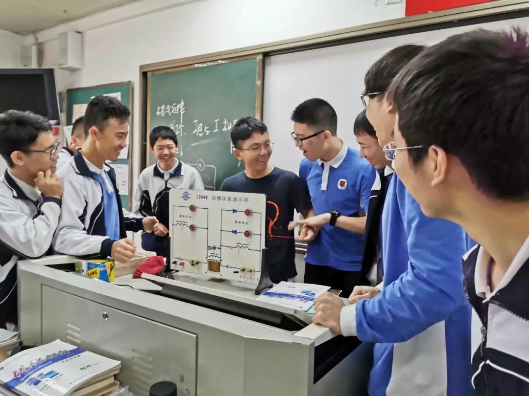 據(jù)黃老師介紹,二實(shí)這個(gè)《課題》,目標(biāo)是將經(jīng)典習(xí)題教學(xué)和實(shí)驗(yàn)創(chuàng)新聯(lián)姻,讓兩者相得益彰,讓習(xí)題教學(xué)成為培養(yǎng)科學(xué)思維和實(shí)踐意識(shí)的主陣地之一,提高學(xué)生的學(xué)習(xí)興趣和效果。“聽話的繩子”“新桃園三結(jié)義”“比比哪本書更大”“銅管中的時(shí)空隧道”“千人震”......這些都是該課題的物理實(shí)驗(yàn)的創(chuàng)新做法。二實(shí)物理老師們把這些實(shí)驗(yàn)名稱叫做“胖問題”,目的在于通過形象化提高同學(xué)們實(shí)驗(yàn)探究的興趣,其對(duì)應(yīng)的物理核心考點(diǎn)“瘦問題”分別是:“力的平行四邊形定則”“平拋運(yùn)動(dòng)的分解”“繩桿關(guān)聯(lián)速度”“銅管中的電磁感應(yīng)”“自感現(xiàn)象”等。