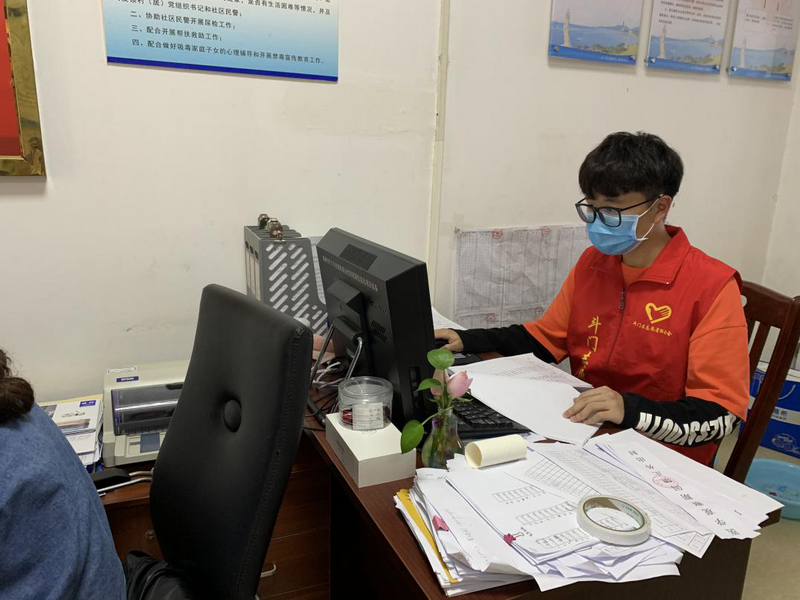深圳信息學院19級劉泓濤在社區(qū)參加志愿服務。