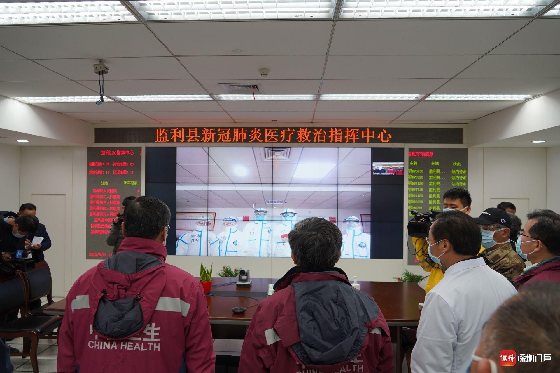 2月21日,監(jiān)利縣人民醫(yī)院指揮中心,廣東省醫(yī)療隊前指領(lǐng)導(dǎo)與縣中醫(yī)院ICU里的廣東醫(yī)療隊隊員進行視頻連線。