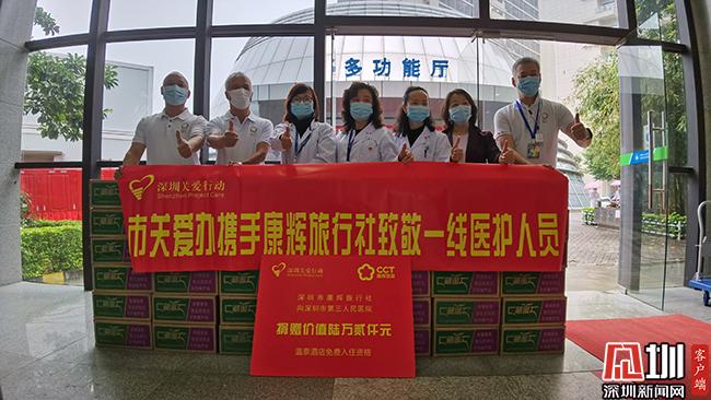 為表達(dá)對(duì)醫(yī)護(hù)人員的感謝,深圳市康輝旅行社捐贈(zèng)價(jià)值6.2萬元的廣東省內(nèi)溫泉酒店免費(fèi)入住券40張。每張入住券可在廣東省內(nèi)指定酒店入住雙床房或大床房?!耙咔槠陂g,我們康輝人一直都在為抗擊疫情獻(xiàn)綿薄之力?!鄙钲谑锌递x旅行社有限公司董事總經(jīng)理滿炎權(quán)告訴記者,在疫情前期,全國(guó)各地醫(yī)用物資告急。各地康輝分公司迅速自我組織、自籌資金,聯(lián)系在國(guó)外的康輝旅行社的領(lǐng)隊(duì)及導(dǎo)游購(gòu)買大量醫(yī)療物資回國(guó)?!艾F(xiàn)在國(guó)內(nèi)醫(yī)療物資暫時(shí)不缺了,我們深圳康輝送給三院的醫(yī)護(hù)人員溫泉酒店入住券,希望他們?cè)谝咔榻Y(jié)束后,能好好休息?!?/p>
