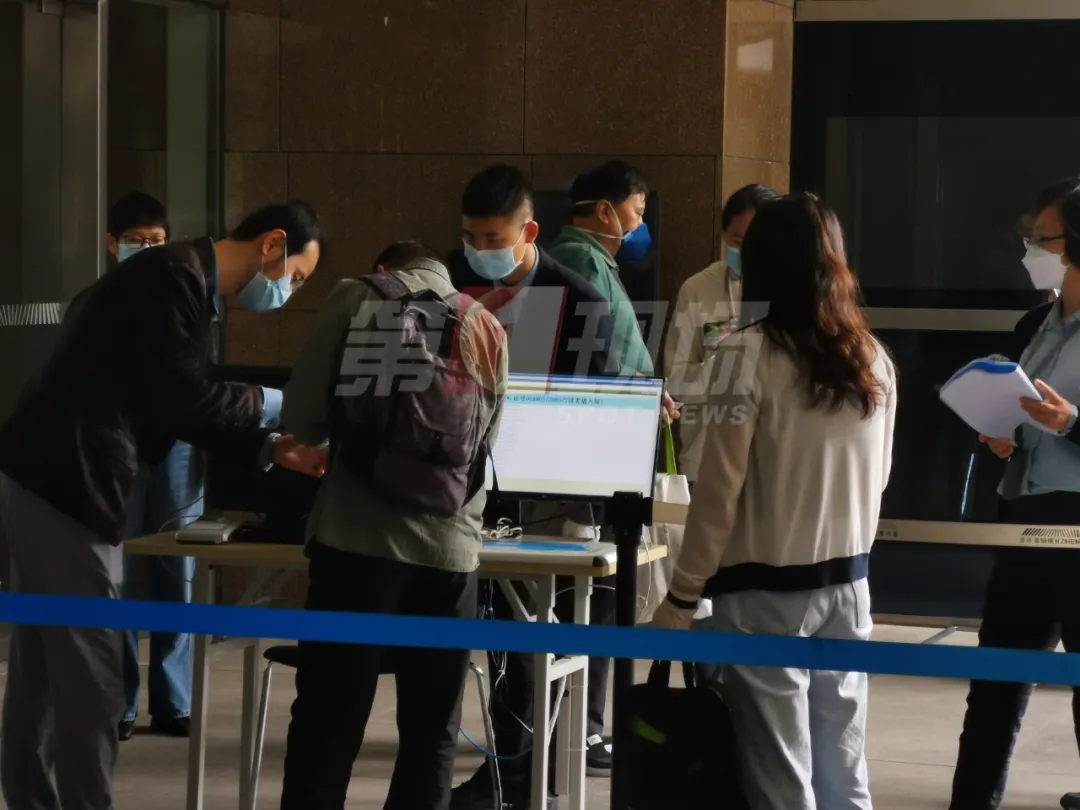 ●場所只開啟了唯一一個進(jìn)出通道,預(yù)約人員在這里檢測體溫和登記;