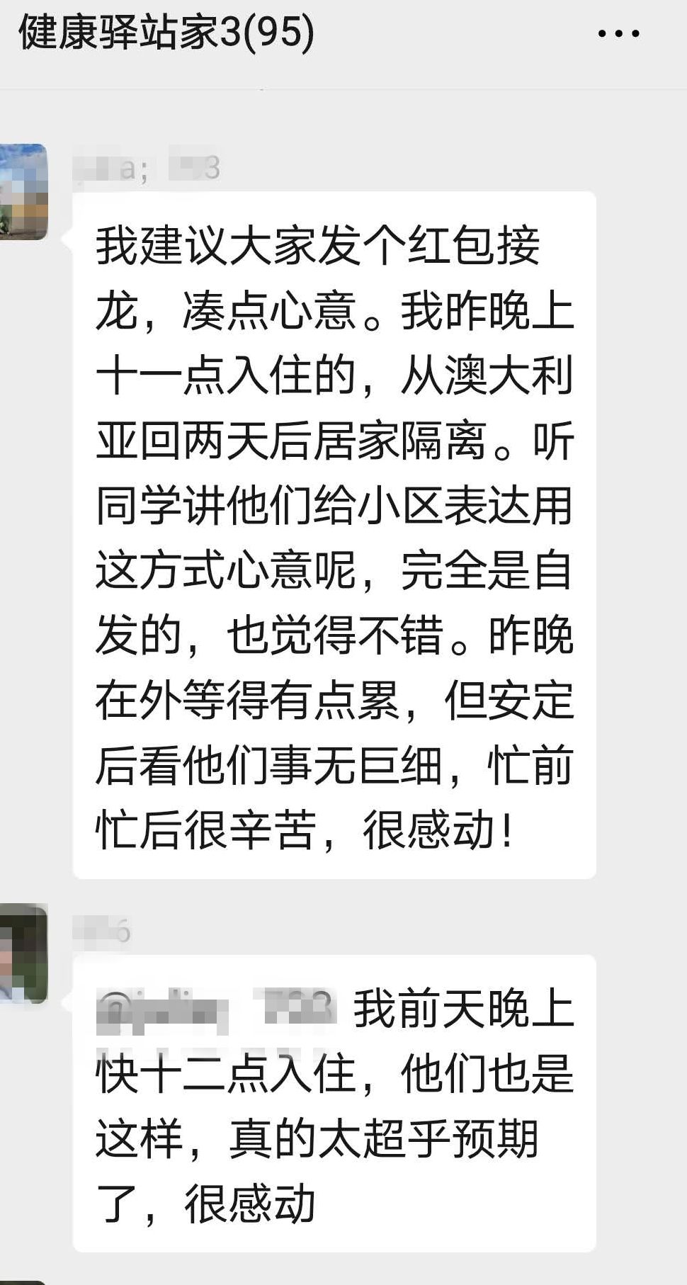 第二天,阿姨在微信群里說,昨晚雖然在外面等的有點累,但是看到工作人員事無巨細,忙前忙后很辛苦,非常感動,想以紅包接龍的方式表達對工作人員的感謝。醫(yī)護人員拒絕了阿姨的好意,心里暖暖的:“我們用醫(yī)務工作者的初心,用我們的耐心和愛心做好了工作,一切辛苦都值得了?!?/span>